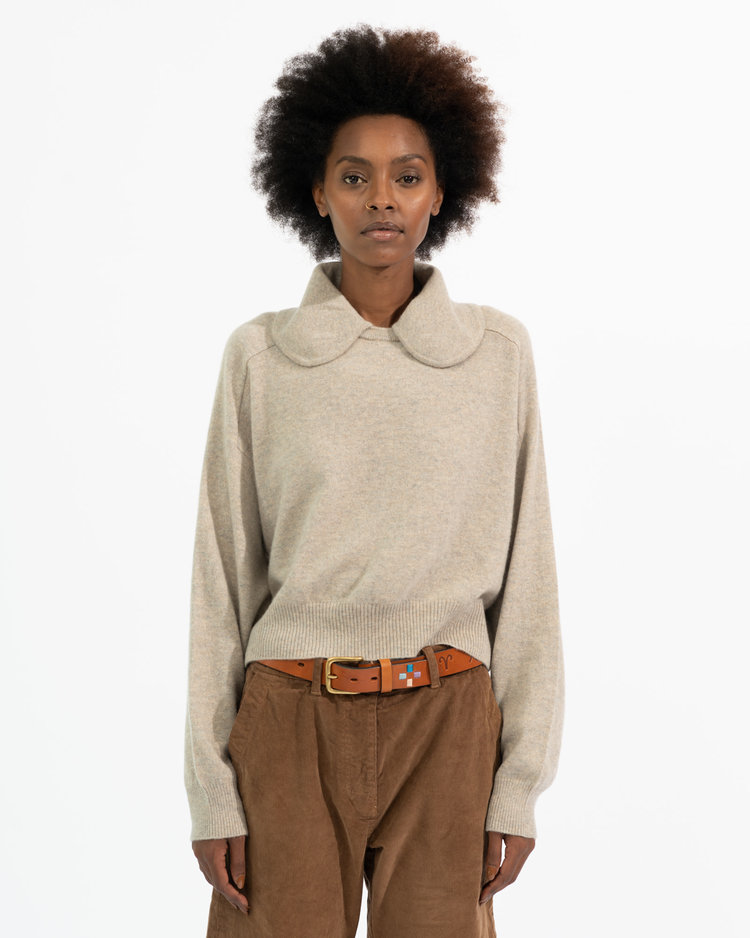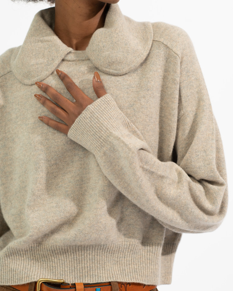• We love this cashmere sweater from Lou Lou Studio...especially the ultra-chic Peter Pan Collar. Veronica is 5' 11" and wearing a size xs.